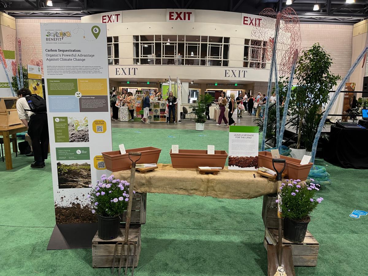 The science-fair exhibits featured a handful of ongoing and past research projects that The Organic Center has facilitated and communication products like reports and informational videos that are used to communicate science-backed benefits of organic to consumers. A happy hour with food and drinks took place halfway through the show and a scavenger hunt with big prizes encouraged visitors to engage with the science exhibits and sponsoring brand booths to learn more about the benefits that organic has to offer.